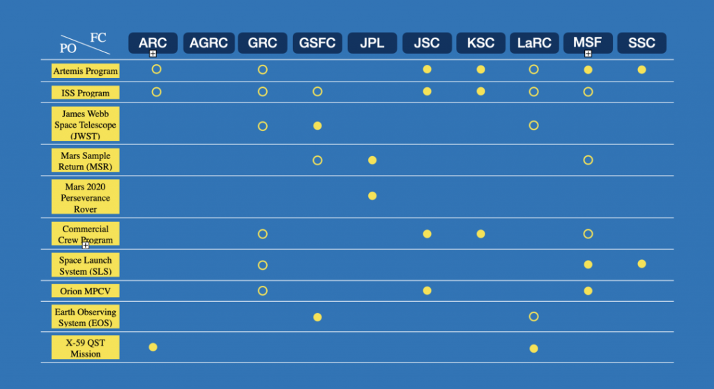 矩阵的横向,则是NASA一个个跨中心的项目办公室,这些项目办公室更像作战指挥部,负责驱动具体项目目标的完成。